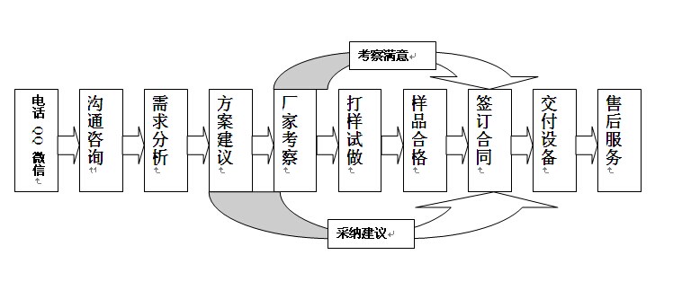 我們的設備選型與考察到最后合作,一般有6-8步流程走,如果是老客戶,就會變得非常簡單,甚至一個電話搞定。下面,我來解釋上面的合作流程圖: